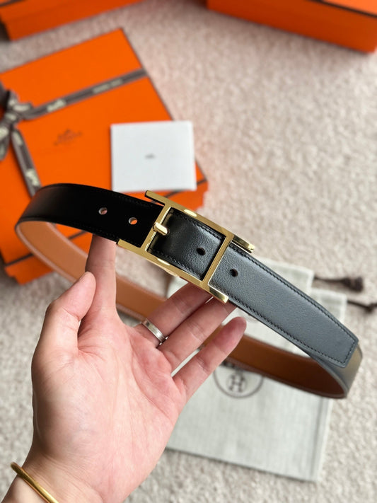 HELENE QUENTIN WENDBARER LEDERGÜRTEL — SCHWARZ & BRAUN (GOLD-BESCHLÄGE, 32 MM)