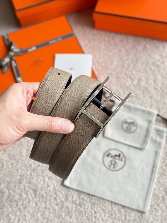 HELENE QUENTIN WENDBARER LEDERGÜRTEL — SCHWARZ & BEIGE (SILBERNE BESCHLÄGE, 32 MM)